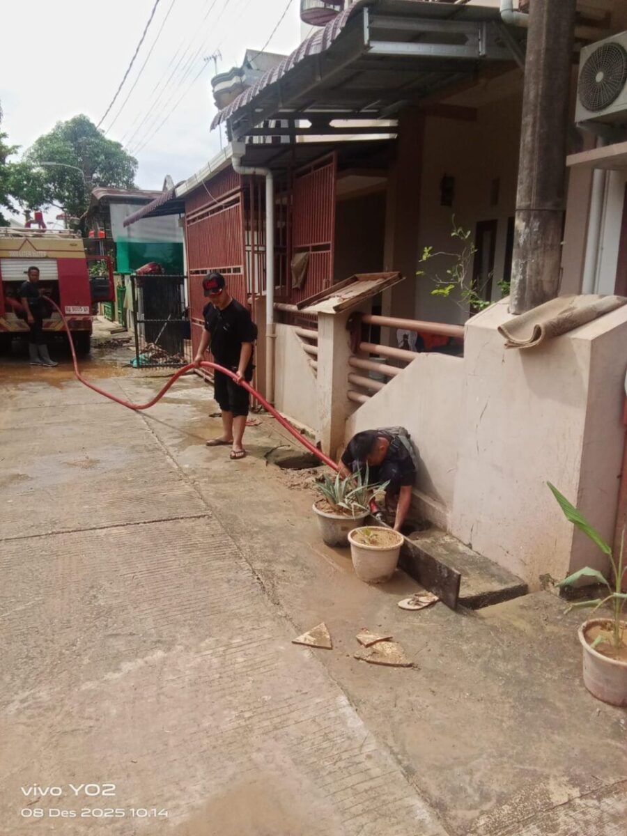 Dharmasraya, hantaran.Co–Tim relawan Dharmasraya terus melakukan pembersihan lingkungan yang terdampak akibat banjir dan lumpur di Kecamatan Nanggalo, Kota Padang, pada hari ketiga, Senin (8/12/2025).