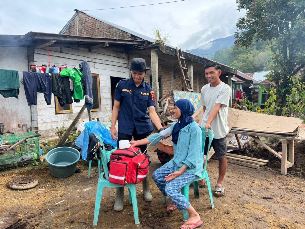 Tim Dokkes Polresta Bukittinggi turun langsung ke kawasan terdampak bencana di Toboh, Malalak Timur, untuk memberikan pelayanan kesehatan secara door to door kepada warga.