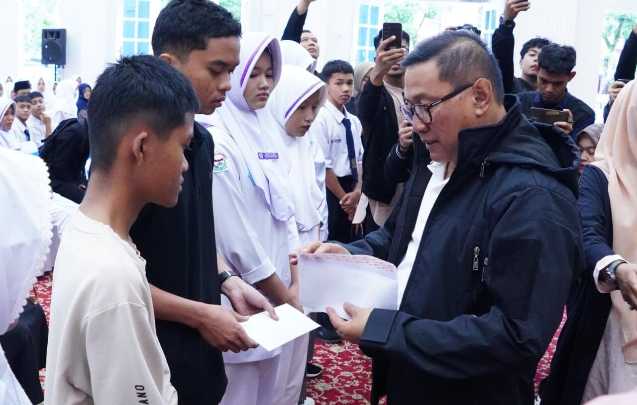 BUKITTINGGI, hantaran.co – Wali Kota Bukittinggi menyerahkan bantuan kepada 262 pelajar di Kota Bukittinggi yang rumahnya terdampak bencana banjir bandang dan longsor. Bantuan kemanusian yang berasal dari TP-PKK, GOW, Baznas,Yayasan Perempuan Amanah Minang (YPAM) dan sejumlah pengusaha, diserahkan secara simbolis di balairung rumah dinas walikota, Selasa, (16/12/2025).