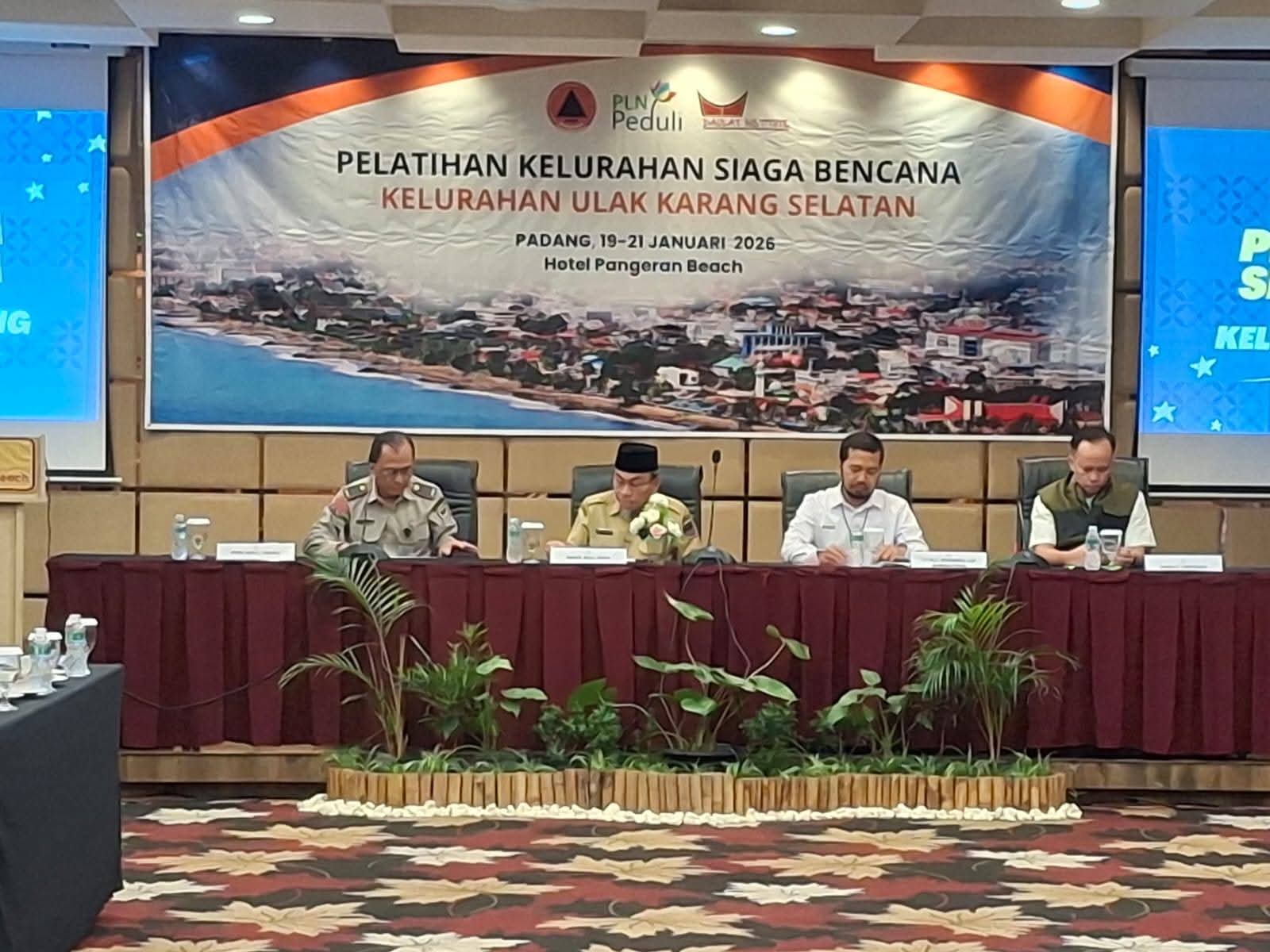 Padang, hantaran.Co–Wakil Wali Kota Padang Maigus Nasir membuka Pelatihan Kelurahan Siaga Bencana (KSB), Senin (19/1/2026). Pelatihan bagi KSB Kelurahan Ulak Karang Selatan itu digelar di Hotel Pangeran Beach.