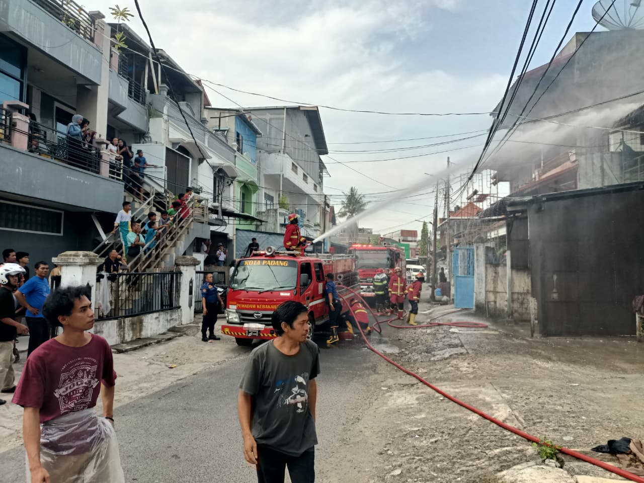 Katanya, lokasi berada di kawasan permukiman padat dengan akses sempit menjadi tantangan petugas menuju lokasi kejadian. Damkar Kota Padang mengerahkan 6 unit armada dan sekitar 80 personel.
