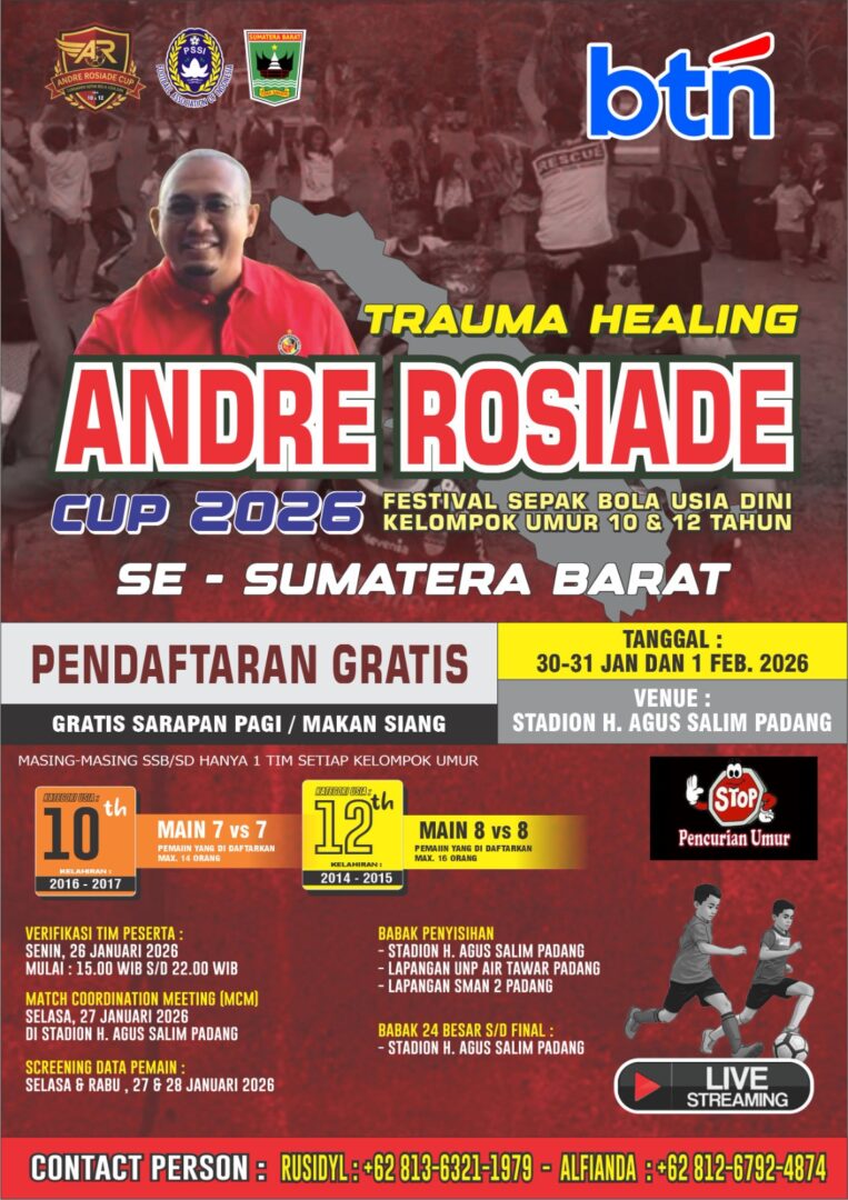 Dari festival tersebut diharapkan akan lahir bintang-bintang sepakbola masa depan.”Kita semua berharap Festival Sepakbola Andre Rosiade Cup 2026 Bersama BTN ini bisa menjadi ajang berkompetisi bagi pesepakbola usia dini berbakat,” tutup Palek.