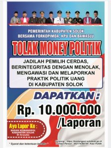 SOLOK, hantaran.co—Masuknya tahun atau jelang pemilihan umum membuat sejumlah pihak mulai mengantisipasi ada kecurangan atau politik uang (money politic). Tidak bisa dipungkiri fenomena ini sering muncul saat pesta demokrasi tersebut.