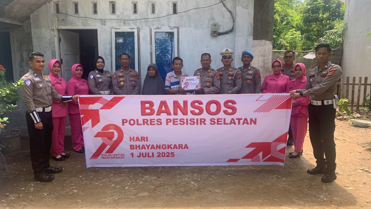 Pesisir Selatan — Dalam rangka memperingati Hari Bhayangkara ke-79, Polres Pesisir Selatan menggelar kegiatan bakti sosial (bansos) berupa penyaluran paket sembako kepada para purnawirawan kepolisian. Kegiatan tersebut berlangsung pada Senin, 16 Juni 2025, mulai pukul 10.00 WIB di wilayah Painan, Kecamatan IV Jurai, Kabupaten Pesisir Selatan.