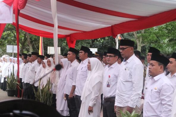DHARMASRAYA, HANTARAN.CO – Bupati Dharmasraya, Sutan Riska Tuanku Kerajaan yang diwakili oleh Sekda, Adlisman mengukuhkan Panitia Penyelenggara Musabaqah Tilawatil Quran (MTQ) Nasional ke-XII tingkat Kabupaten Dharmasraya, di Halaman Kantor Camat Sungai Rumbai, Rabu (15/5/24).