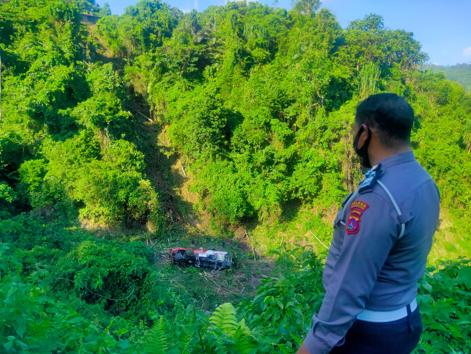 PESSEL, hantaran.co – Diduga mengalami rem blong, sebuah Truk Tangki Pertamina bermuatan Pertalite hilang kendali sehingga menabrak pembatas jalan dan terjun bebas ke dalam jurang.