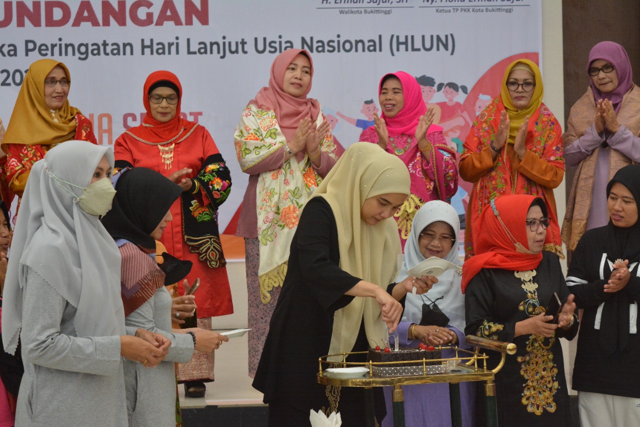 Ketua TP-PKK Kota Bukittinggi Fiona Erman Safar menyampaikan apresiasi atas semangat para lansia yang mengikuti kegiatan HLUN ke 26. Momentum peringatan HLUN tahun ini hendaknya menjadi pendorong bagi seluruh pihak untuk lebih memperhatikan keberadaan para Lansia.