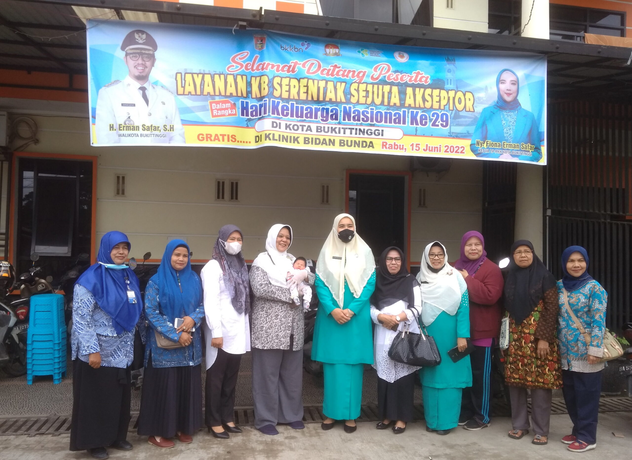Ketua TP-PKK Bukittinggi Fiona Erman Safar ketika meninjau Pelanyanan KB sejuta aseptor bersama Kepala Dinas P3APPKB Tati Yasmarni di Klinik BPM Bunda Gulai Bancah menyampaikan, melalui pelayanan KB sejuta akseptor yang dilaksanakan ini, diharapkan kebutuhan akan alat kontrasepsi bagi pasangan usia subur bisa terpenuhi. Kegiatan ini juga dimaksudkan untuk melindungi kehamilan yang tidak diinginkan atau kehamilan yang beresiko.