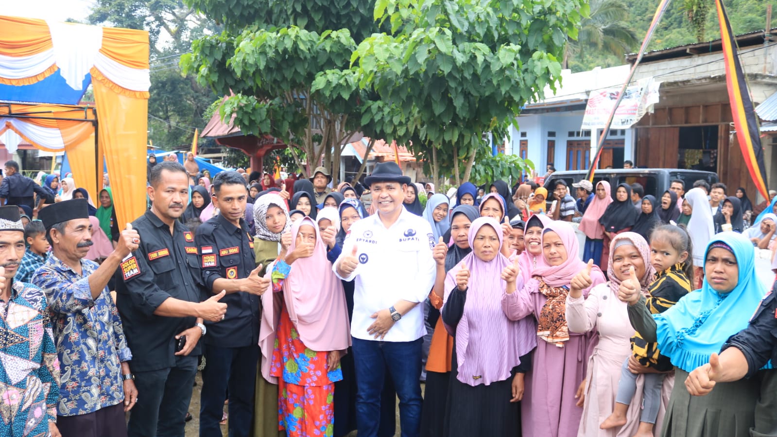 Masyarakat yang tadinya was-was mendengar kabar rombongan mengalami masalah di jalan. Akhirnya lega. Epyardi disambut meriah masyarakat.