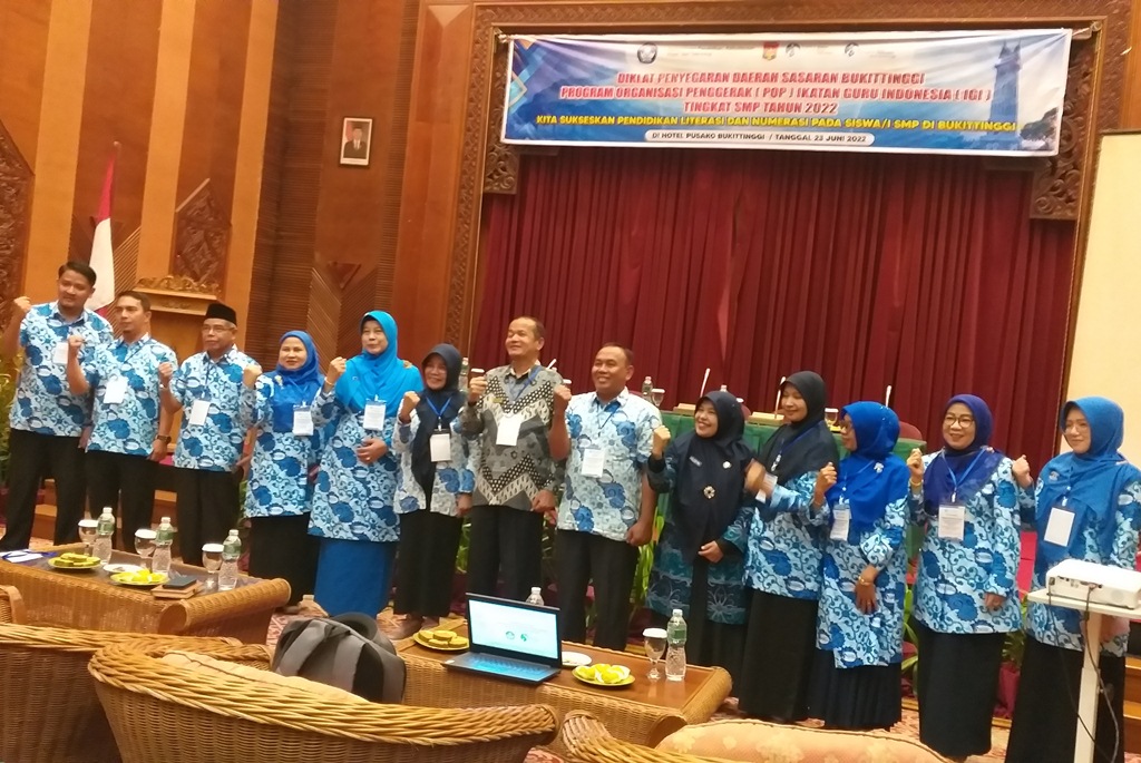 BUKITTINGGI, hantaran.co – Kemendikbudristek RI bekerja sama dengan Ikatan Guru Indonesia (IGI) gelar Pendidikan dan Pelatihan (Diklat) penyegaran Program Organisasi Penggerak (POP) bagi guru dan Kepala SMP se-Kota Bukittinggi di Hotel Pusako Bukittinggi, Kamis(23/06).