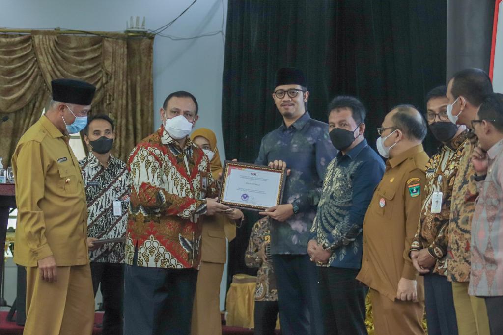 BUKITTINGGI, hantaran.co – Kota Bukittinggi berhasil mendapatkan nilai tertinggi pada kegiatan MCP (Monitoring Corruption of Prevention) yang diberikan KPK RI. Atas prestasi tersebut, Kota Bukittinggi mendapatkan sebuah penghargaan yang diserahkan langsung Ketua KPK RI Komjen Pol. Firli Bahuri, M. Si dan diterima Wali Kota Bukittinggi Erman Safar dalam Rapat Koordinasi Program Pemberantasan Korupsi Terintegrasi Se- Sumatera Barat di Istana Gubernur Provinsi Sumatera Barat, Selasa(21/6)