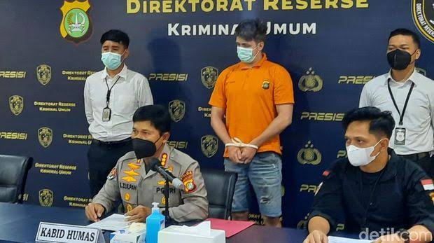 Dikutip detikNews, tersangka SP terlihat mengenakan baju tahanan berwarna oranye. Tersangka SP diborgol saat digiring ke ruang konferensi pers.
