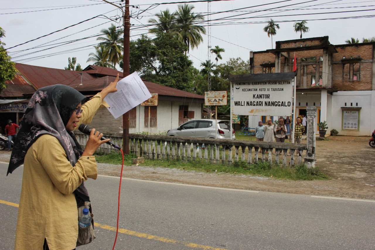 “Jadi, kami minta pihak kepolisian dalam hal ini Polres Pessel dan Polda Sumbar agar transparan dalam memproses kasus ini. Kami ingin kasus penyalahgunaan anggaran oleh oknum Walinagari segera tuntas. Dan kami juga mengultimatum Walinagari setempat agar tidak lagi beraktivitas di kantor ini,” ujar Husni Mertati saat berorasi di depan kantor Walinagari Nanggalo, Kecamatan Koto XI Tarusan.