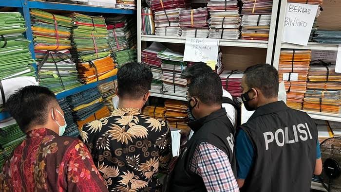 Tim penyidik Subdit Harda Ditreskrimum Polda Metro Jaya memeriksa berkas-berkas tersebut. Penggeledahan hingga pukul 15.00 WIB masih berlangsung.