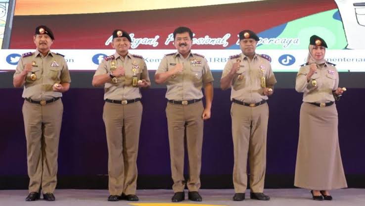 JAKARTA, hantaran.co – Menteri Agraria dan Tata Ruang/Kepala Badan Pertanahan Nasional (ATR/BPN) Hadi Tjahjanto menambahkan atribut baru berupa tongkat komando, baret, dan tanda pangkat pada seragam jajaran pegawai Kementerian ATR/BPN.