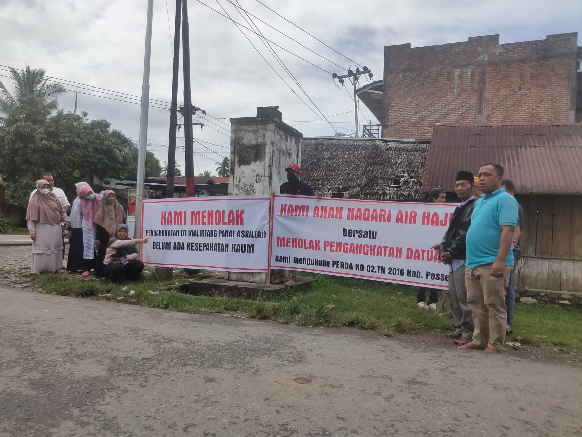 PESSEL, hantaran.co – Masyarakat yang mewakili anak kemenakan dibawah Payuang Datuak Malintang Panai, Nagari Air Haji, Kecamatan Linggo Sari Baganti, Kabupaten Pesisir Selatan, Sumatera Barat, menolak pengangkatan Asril sebagai Datuak Malintang Panai, Sabtu (30/7/2022).
