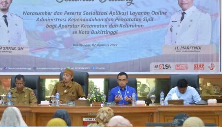 BUKITTINGGI, hantaran.co – Pemko Bukittinggi melalui Dinas Kependudukan dan Catatan Sipil meluncurkan aplikasi layanan online administrasi dukcapil, menduplikasi program dan Kabupaten Padang Pariaman. Sebagai langkah awal, Pemko Bukittinggi menggelar sosialisasi aplikasi tersebut bagi aparatur kecamatan dan kelurahan se-Kota Bukittinggi, Selasa(2/8) di Aula Balaikota setempat.