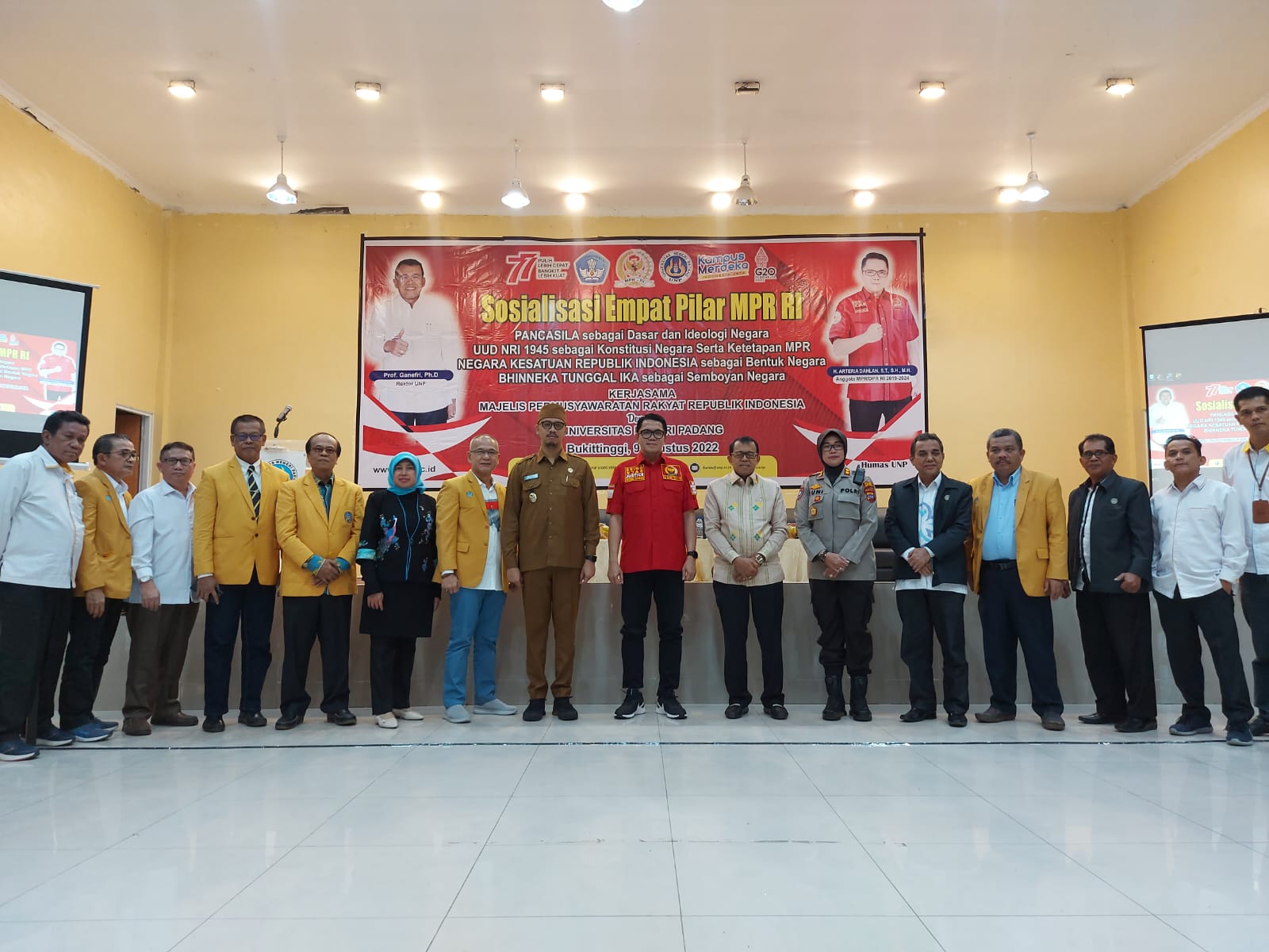 BUKITTINGGI, hantaran.co – Anggota MPR RI Arteria Dahlan sosialisasikan empat pilar kebangsaan di Gedung PGSD Bukittinggi, Senin(9/8). Kegiatan ini turut dihadiri Wali Kota Bukittinggi, Kepala SKPD, Camat dan Lurah, perwakilan mahasiswa serta sejumlah undangan.