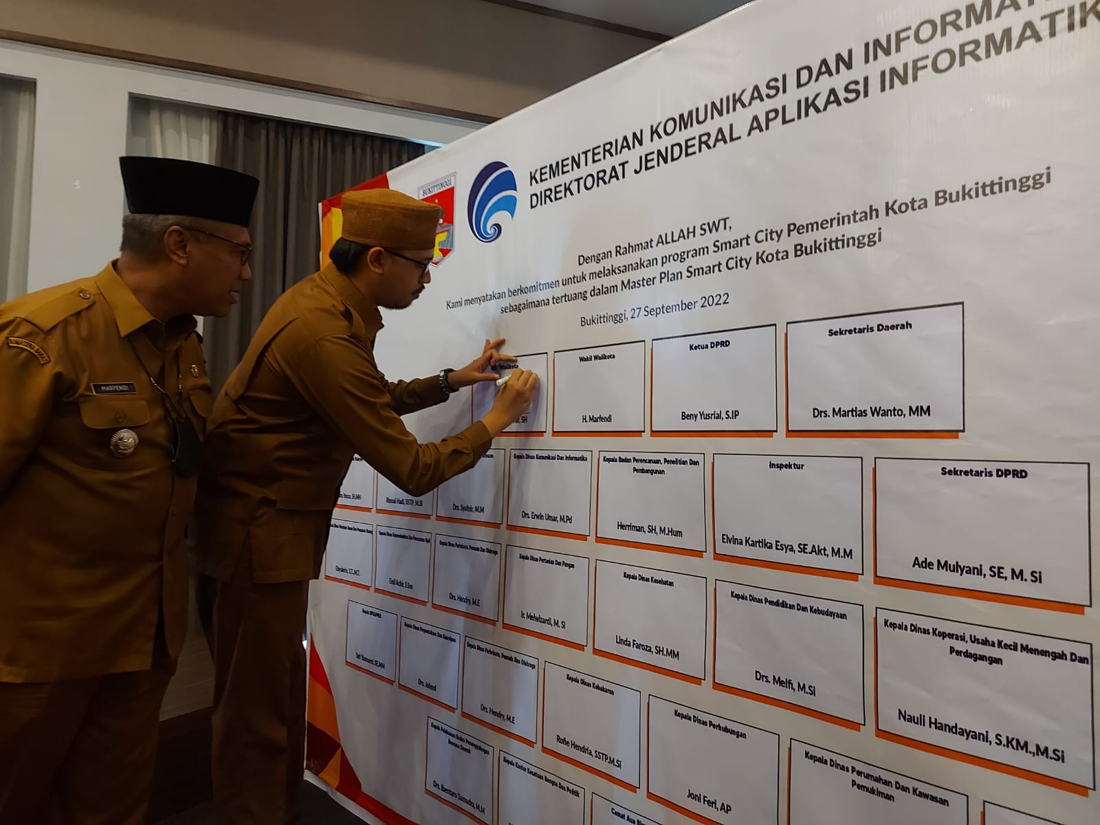 “Pemko Bukittinggi mendapat pendampingan dari Kemenkominfo terhadap pengembangan 6 pilar utama smart city. Smart governance, smart people, smart mobility, smart living, smart economy dan smart environment,” jelasnya.