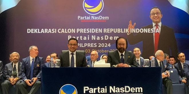 Dalam deklarasi yang berlangsung di NasDem Tower itu, Anies menerima tawaran Surya Paloh soal capres untuk Pilpres 2024.