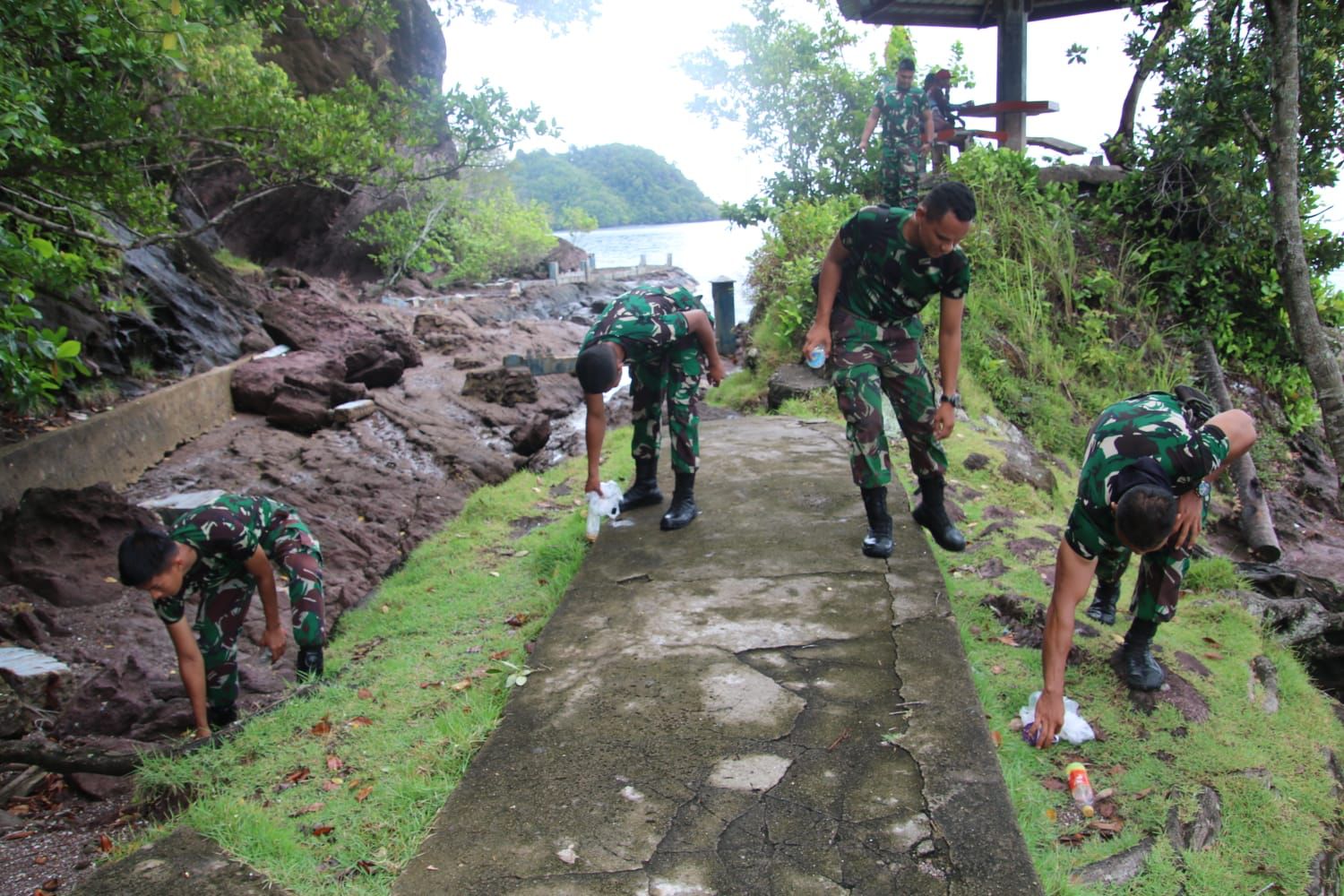 Disela-sela kegiatan TMMD (Tentara Manunggal Membangun Desa) ke 115 yang berlangsung di Kabupaten Pesisir Selatan, Tim Satgas TMMD melakukan kegiatan bersih-bersih pantai yang dipusatkan di lokasi wisata Batu Kareta pada kawasan Carocok Painan.