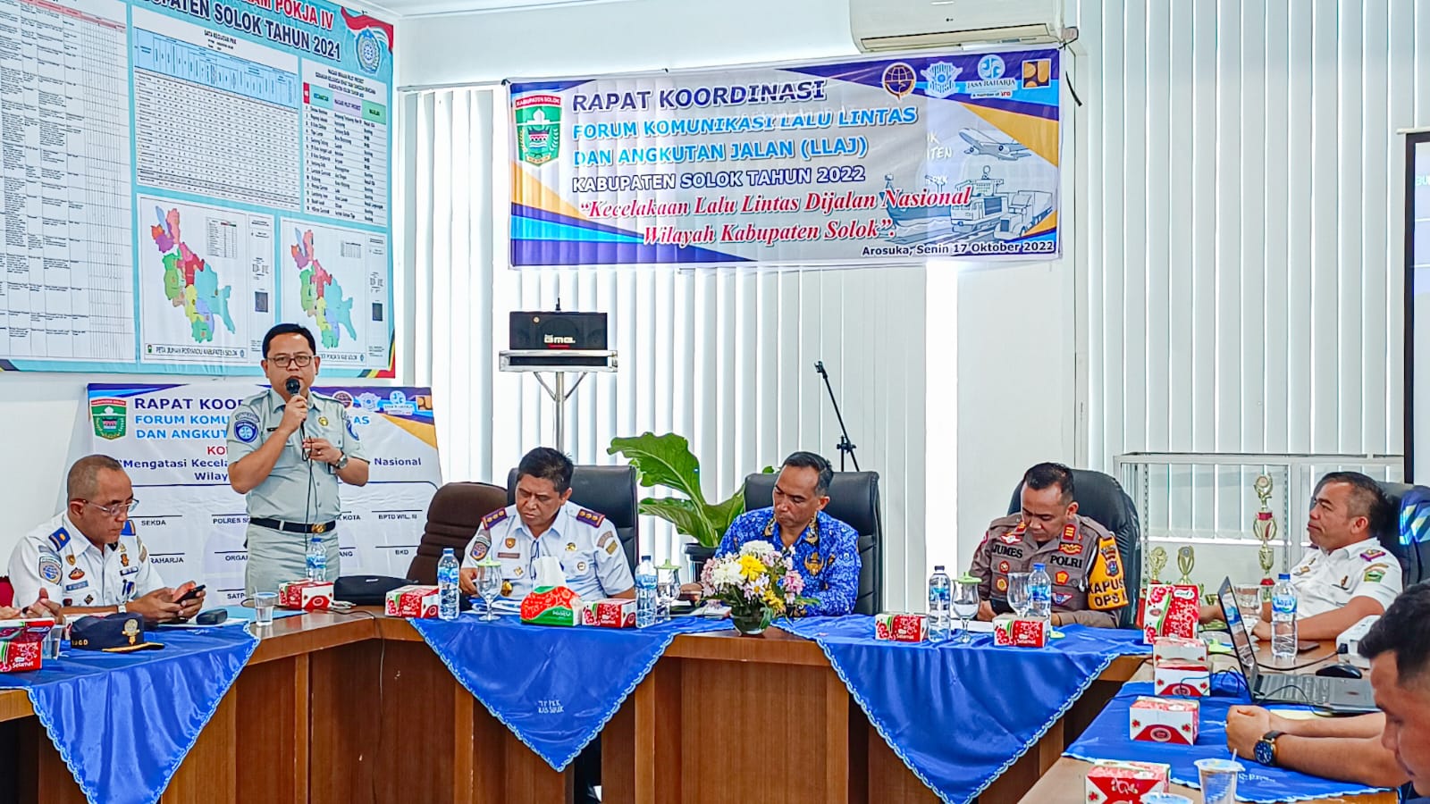 SOLOK, hantaran.co, PT. Jasa Raharja Perwakilan Solok bersama Dinas Perhubungan Kabupaten Solok dan Satlantas Polres Solok (Arosuka) menggelar Rapat Koordinasi Forum Komunikasi Lalu Lintas (FKLL) dan angkutan jalan dengan melibatkan beberapa instansi terkait.