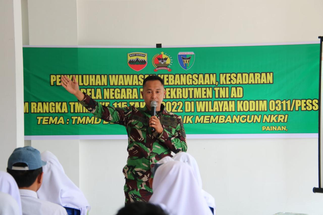 “Dalam program non fisik TMMD ke-115 Kodim 0311/Pessel, kami berupaya menarik minat generasi muda untuk mengabdikan dirinya sebagai prajurit TNI, baik melalui jalur Tamtama, Bintara, ataupun Perwira,” ujar Riki Yosda.