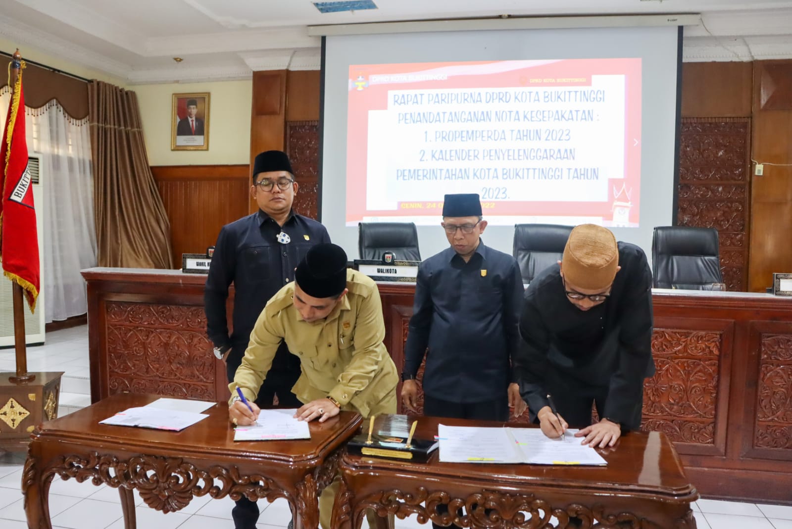 BUKITTINGGI, hantaran.co – Pemko dan DPRD Bukittinggi sepakati program pembentukan peraturan daerah (Propemperda) tahun 2023 dan kalender pemerintahan daerah Kota Bukittinggi tahun 2023.