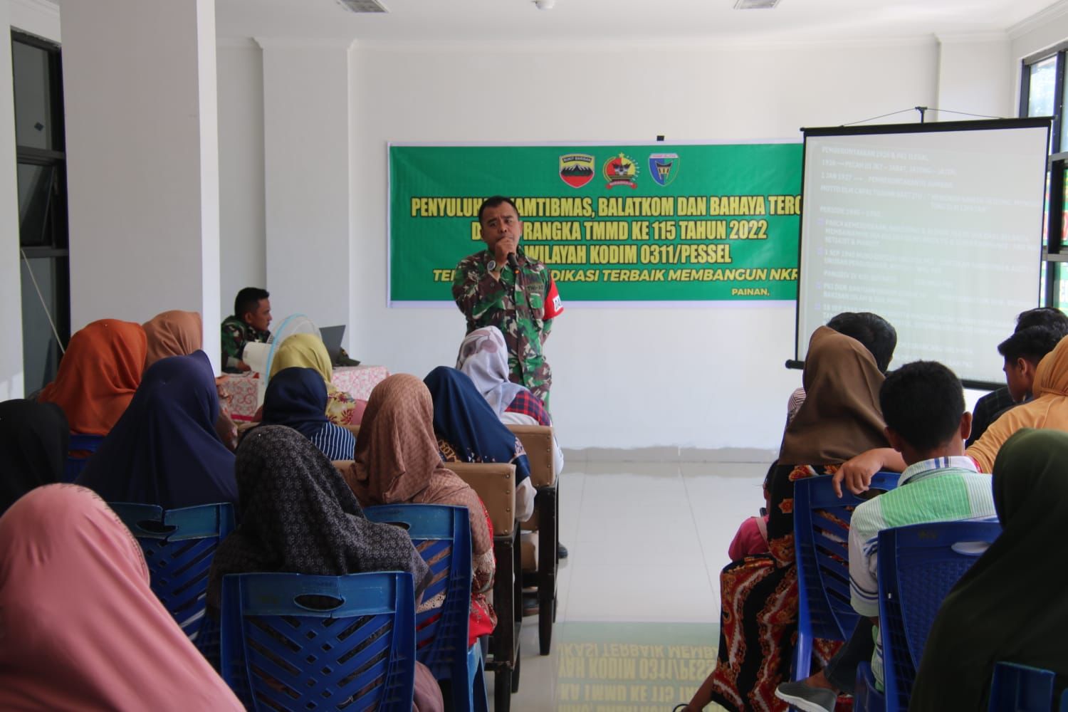 Acara sosialisasi itu dilaksanakan di Posko TMMD yang berlokasi di Rusunawa Painan, Kenagarian Painan Selatan, Kecamatan IV Jurai, Kabupaten Pesisir Selatan yang dibuka oleh Komandan SSK Letda Inf Basrel Pastian.