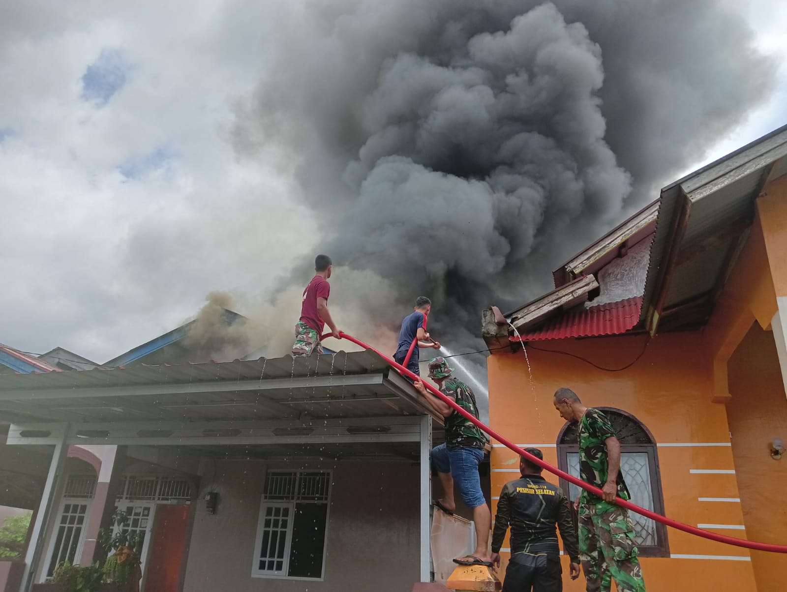 Tak hanya membantu memadamkan api, para personil TNI juga terlihat membantu pemilik rumah yang menjadi korban kebakaran atas nama Fisyahri Rajab, untuk mengevakuasi barang-barangnya dari dalam rumah.