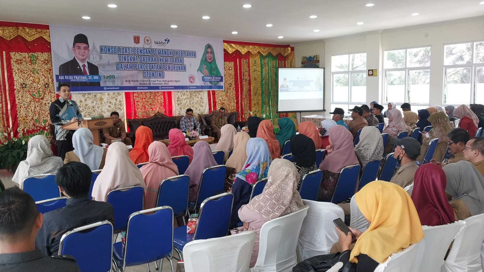 “Upaya pemerintah untuk percepatan penurunan angka stunting tersebut telah dituangkan dalam Peraturan Presiden (Perpres) Nomor 72 tahun 2021. Upaya itu menjadi sebuah keharusan bagi pemangku kebijakan agar stunting dapat turun setidaknya 3 persen setiap tahunnya,” kata Ade Rezki Pratama, ketika membuka kegiatan konsolidasi dengan pemangku kebijakan tingkat daerah (kemitraan) dalam percepatan penurunan stunting di aula Kantor Camat Sungai Pua, Kabupaten Agam, Selasa (6/12).