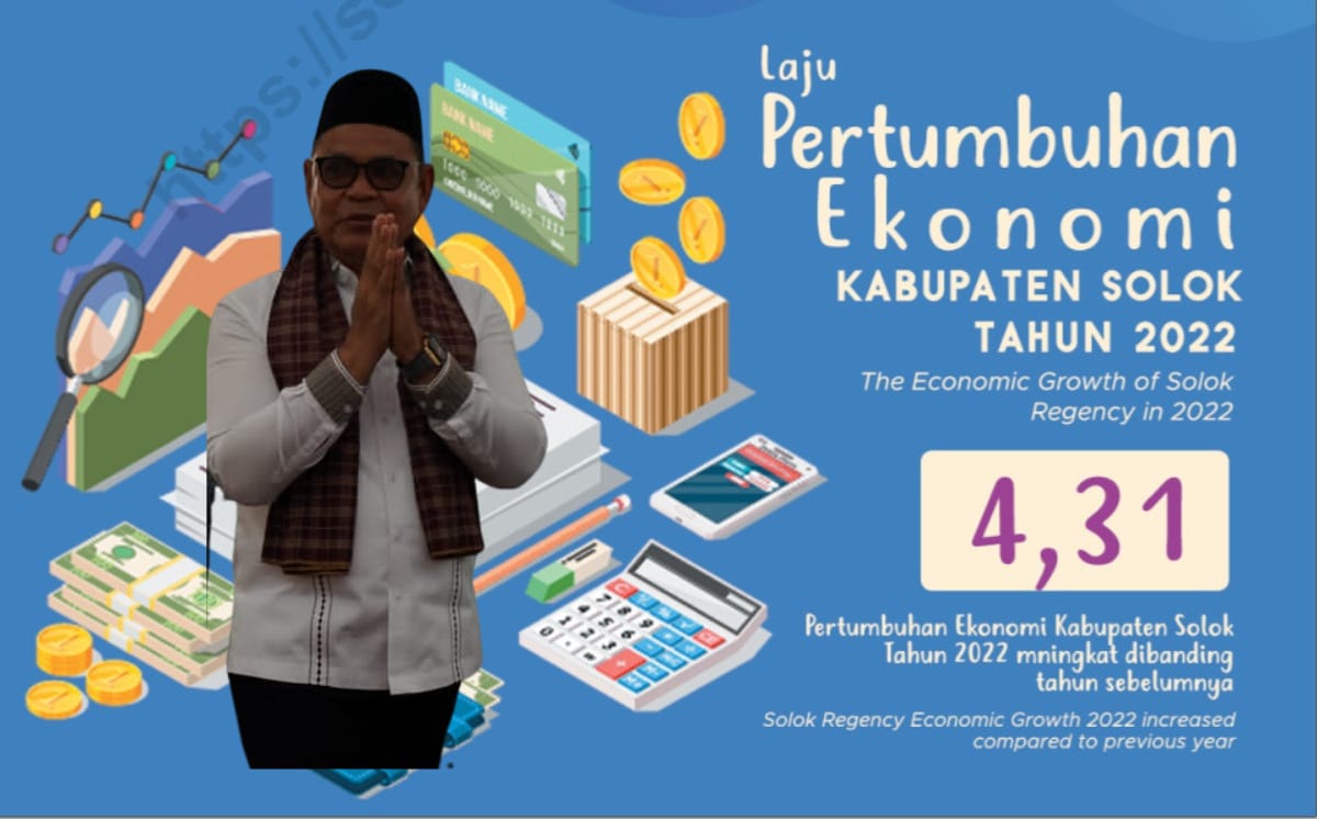 SOLOK, hantaran.co—Pertumbuhan ekonomi Kabupaten Solok kembali meningkat pada tahun 2022. Di bawah komando Bupati Solok Epyardi Asda, dengan Solok Super Team (SST) nya melakukan penetrasi sejumlah program, dan terbukti pertumbuhan ekonomi naik menjadi 4,31 persen angka meningkat dibandingkan 2021 yang hanya 3,32 persen.