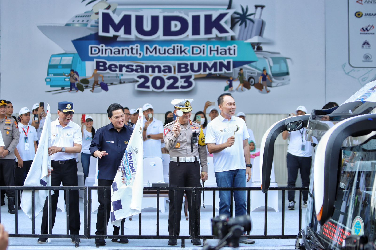 Flag off dilakukan langsung oleh Menteri BUMN Erick Thohir bersama Menteri Perhubungan Budi Karya Sumadi, Wamen BUMN I Pahala Nugraha Manssury, Korlantas Polri Irjen Pol. Firman Shantyabudi, dan Direktur Utama Jasa Raharja Rivan A. Purwantono, sebagai Ketua Koordinator Mudik Bersama BUMN 2023.