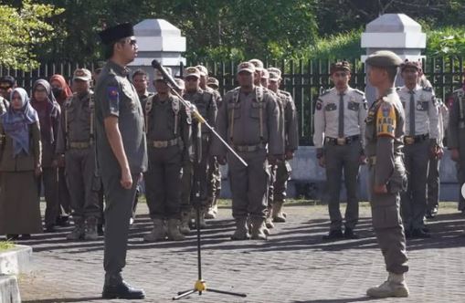 BUKITTINGGI, hantaran.co – Wali Kota Bukittinggi Erman Safar pimpin apel gabungan Satpol PP di halaman kantor tersebut, Senin(17/4).