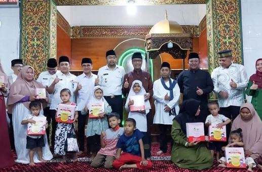 Tim Safari Ramadhan Sumbar menyerahkan sejumlah bantuan berupa Al Quran, kain sarung, serta penyerahan 50 dus bantuan PMT Stunting dan ibu hamil KEK.