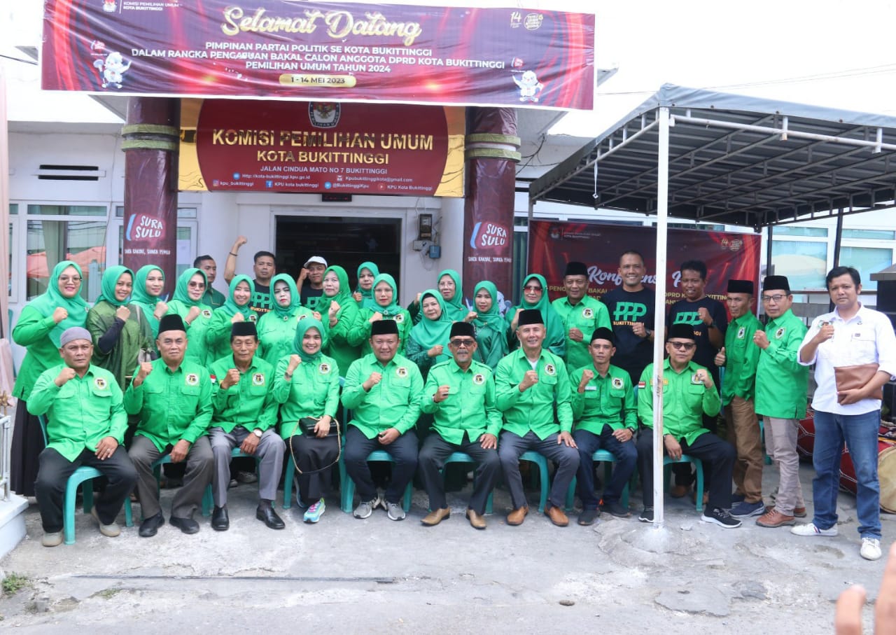 BUKITTINGGI, hantaran.co – Partai Persatuan Pembangunan (PPP) Kota Bukittinggi, resmi mendaftarkan 25 orang Bakal Calon Legislatif (Bacaleg) untuk DPRD Kota Bukittiggi pada Pemilihan Umum (Pemilu) 2024 ke KPU Bukitinggi, Minggu (14/5).