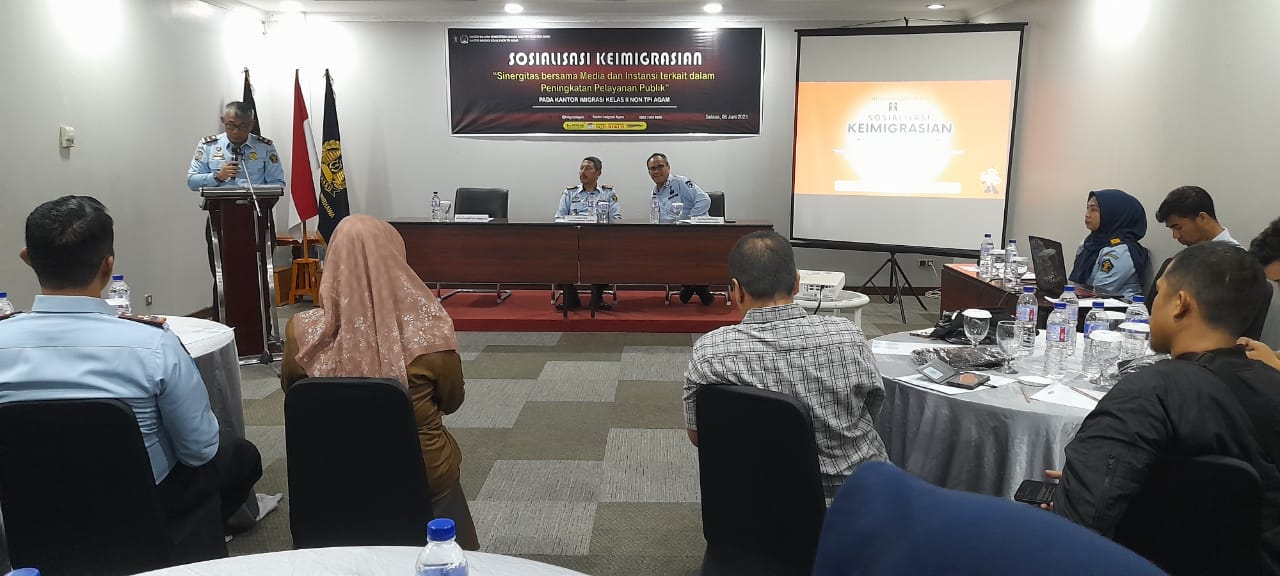 Kepala Kantor Imigrasi Kelas II Non TPI Agam, Adityo Agung Nugroho mengatakan, sosialisasi yang dilaksanakan bertujuan agar terciptanya sinergitas bersama media dan instansi terkait dalam peningkatan pelayanan publik di Kantor Imigrasi Kelas II Non TPI Agam.