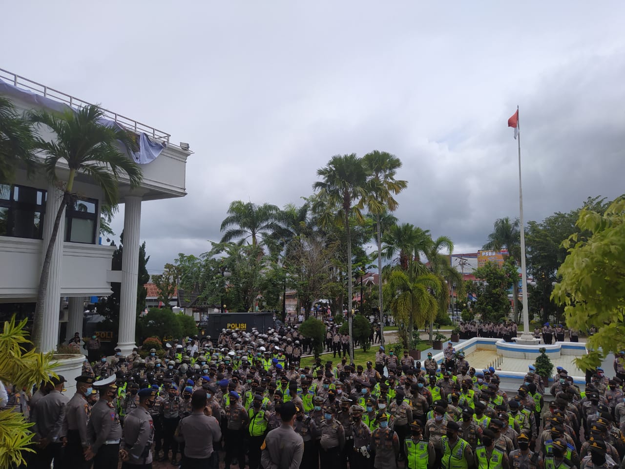 PADANG, hantaran.co — 1.200 perseonel kepolisian gabungan dari Polda Sumbar, Polresta Padang, Satbrimob dan Polair diturunkan untuk mengamankan aksi unjuk rasa dari aliansi buruh dan mahasiswa Sumbar terkait penolakan UU Omnibus Law yang telah disahkan oleh DPR RI.