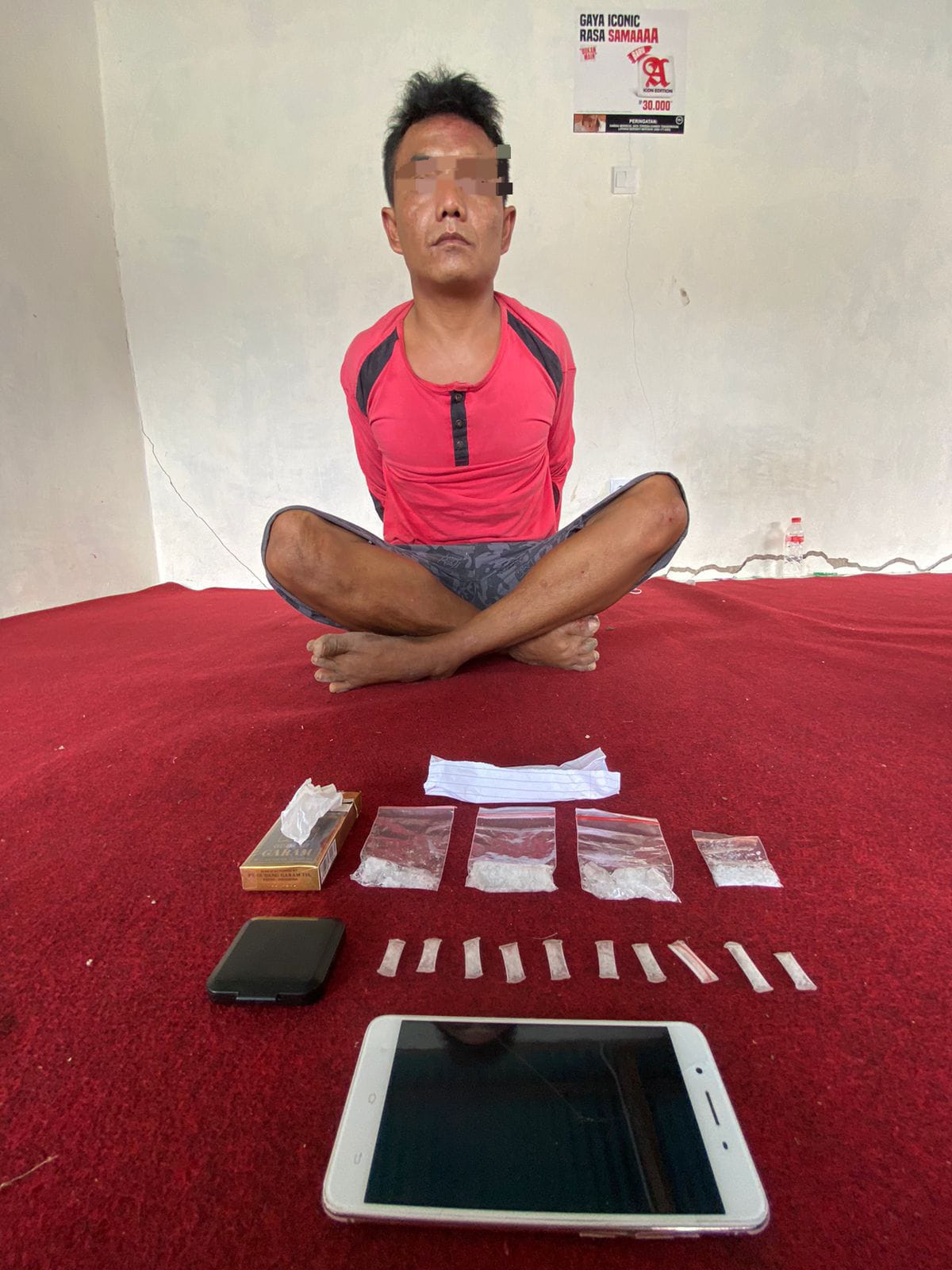 “Tim opsnal langsung melakukan patroli ke daerah tersebut, ketika melihat S polisi langsung mengamankannya. Dihadapan kepala kampung dan pemuda setempat dilakukan penggeledahan dirumah pelaku. Hasil dari penggeledahan tersebut ditemukan tiga paket besar narkotika jenis sabu, satu paket sedang narkotika jenis sabu, dan 10 paket kecil narkotika jenis sabu yang ditemukan didalam kotak rokok Surya di atas lemari pelaku,” kata Riki.