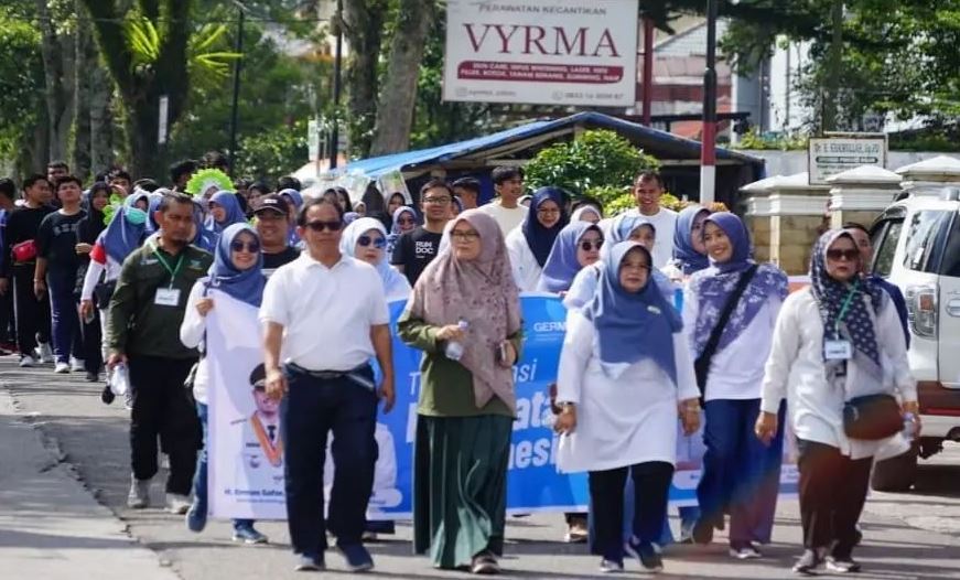 BUKITTINGGI, hantaran.co – Pemko Bukittinggi bersama panitia sukses gelar berbagai kegiatan dalam rangka memperingati Hari Kesehatan Nasional (HKN) ke 59 tahun 2023. Puncak peringatan HKN ke 59 ini di awali dengan senam bersama, jalan sehat dan hiburan di Jalan Sudirman dan Halaman Universitas Mohammad Natsir, Minggu(19/11).