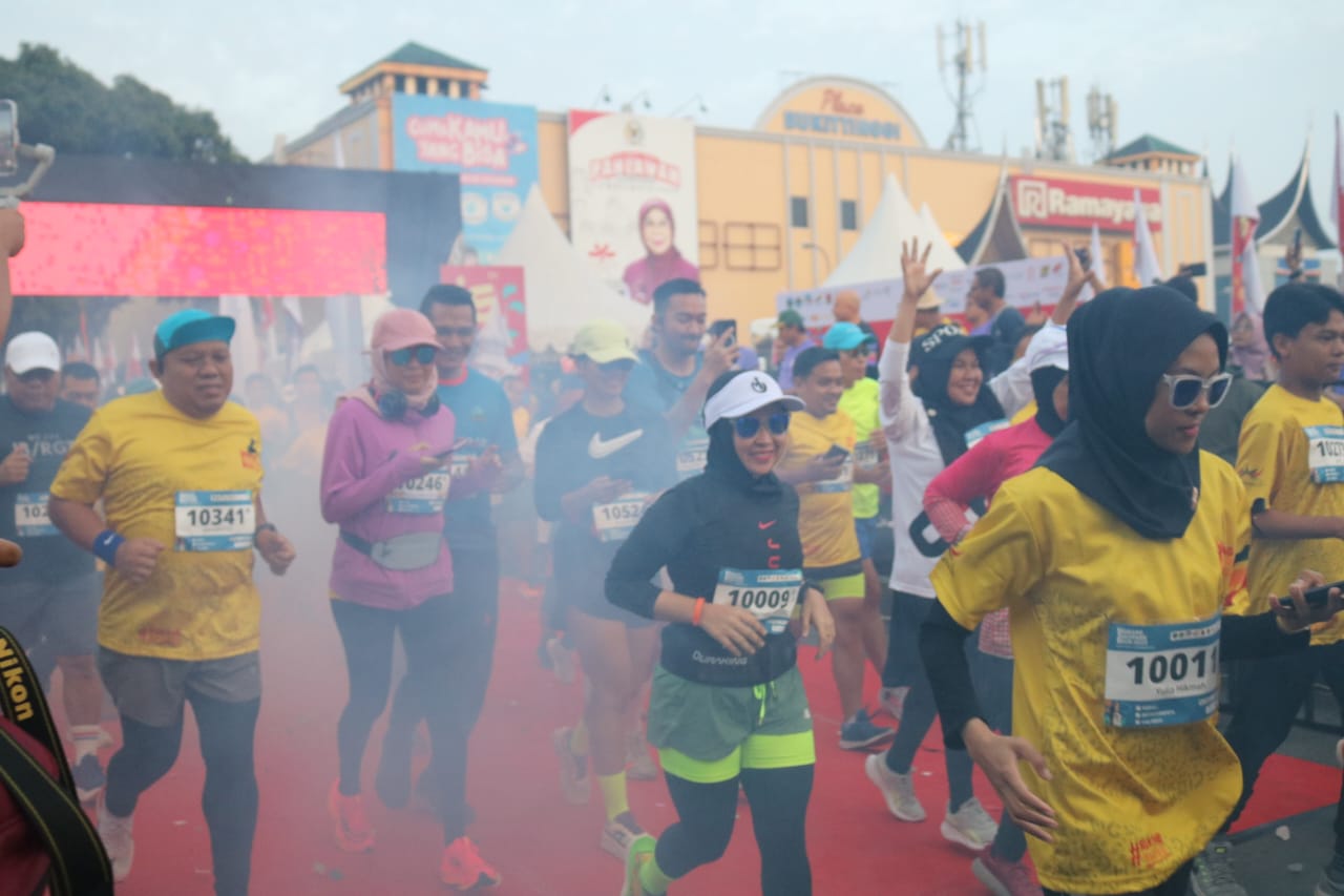 Sekitar 1.500 peserta lomba lari Minang Geopark Run 2023 dari berbagai kota di Indonesia, dilepas oleh Gubernur Sumbar didampingi Sekda Kota Bukittinggi Martias Wanto di lokasi star depan Istana Bung Hatta Kota Bukittinggi, Minggu (10/12).