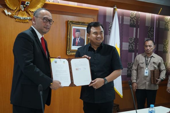 DHARMASRAYA, hantaran.co – Bupati Dharmasraya, Sutan Riska Tuanku Kerajaan, tandatangani Nota Kesepakatan dengan Kementerian Sosial RI di Jakarta, Kamis (5/10/23).