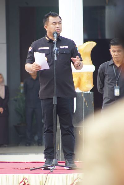 DHARMASRAYA, HANTARAN.CO – Bupati Dharmasraya, Sutan Riska Tuanku Kerajaan kembali menjadi pembina apel gabungan bulan September, di lingkungan Pemda setempat, Senin (4/9/23).