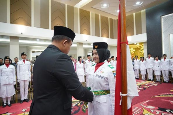 DHARMASRAYA, hantaran.co – Bertempat di Auditorium Dharmasraya, Bupati Dharmasraya, Sutan Riska Tuanku Kerajaan mengukuhkan 72 orang anggota Paskibraka yang akan menunaikan tugas menaikkan bendera merah putih pada puncak peringatan HUT RI Ke-78 di Halaman Kantor Bupati Dharmasraya.