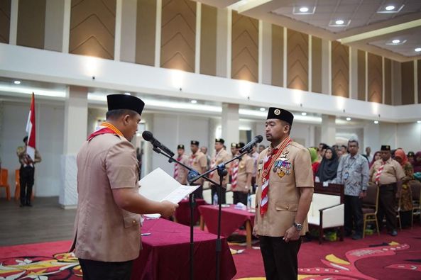 DHARMASRAYA, hantaran.co – Bupati Dharmasraya, Sutan Riska Tuanku Kerajaan, dilantik dan dikukuhkan sebagai Ketua Majelis Pembimbing Cabang (Mabicab) 018 Gerakan Pramuka Kabupaten Dharmasraya masa bhakti 2023-2028, oleh Ketua Kwartir Daerah 03 Gerakan Pramuka Sumatera Barat, Audy Joinaldy, di Auditorium Dharmasraya, Kamis (10/8/23).