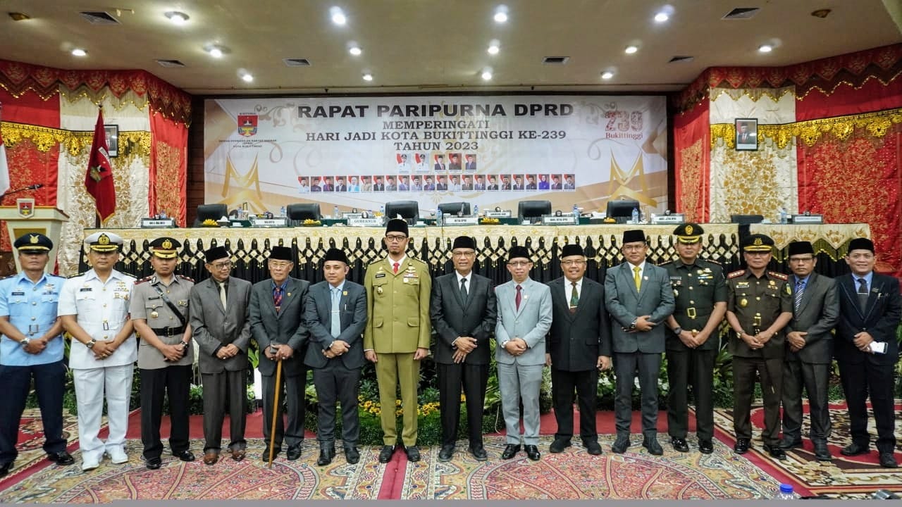Rapat Paripurna HJK Bukittinggi ke-239 dipimpin oleh Ketua DPRD Beny Yusrial, didampingi Wakil Ketua Nur Hasra dan Rusdy Nurman. Turut hadir dalam rapat paripurna Sekretaris Daerah Provinsi Sumbar, Wali Kota dan Wakil Wali Kota, mantan Wali Kota dan Wakil Wali Kota, unsur Forkopimda, anggota DPRD Bukittinggi, Kepala SKPD, pimpinan instansi vertikal, BUMN/BUMD, TP-PKK, Bundo Kanduang, ninik mamak, alim ulama, beserta tamu dan undangan lainnya.