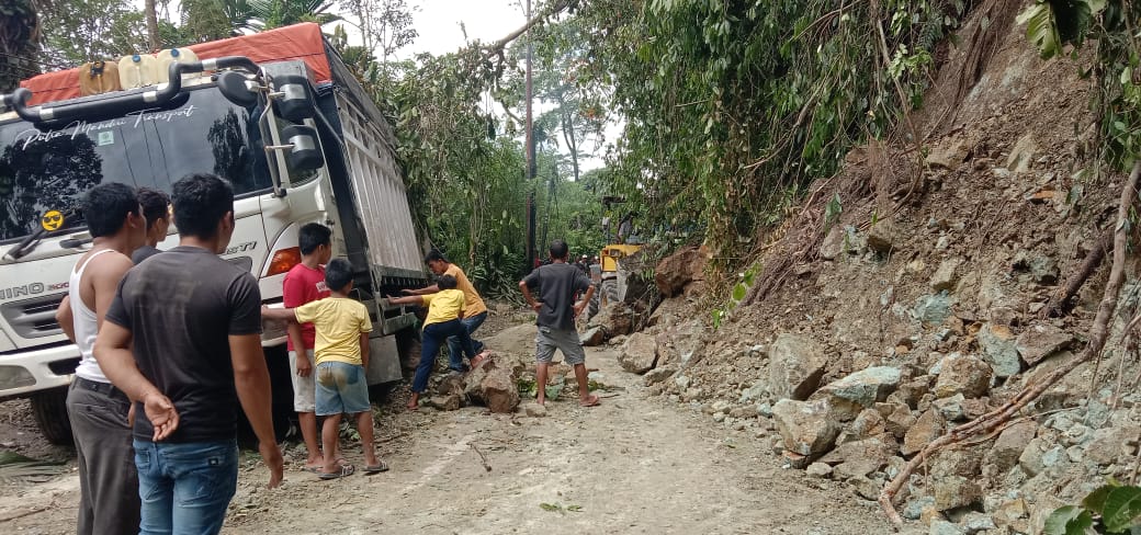 Namun akibat longsor tersebut, kata Defrisiswardi, satu unit mobil Fuso bermuatan semen tergelincir di lokasi dan belum bisa di evakuasi hingga saat ini.