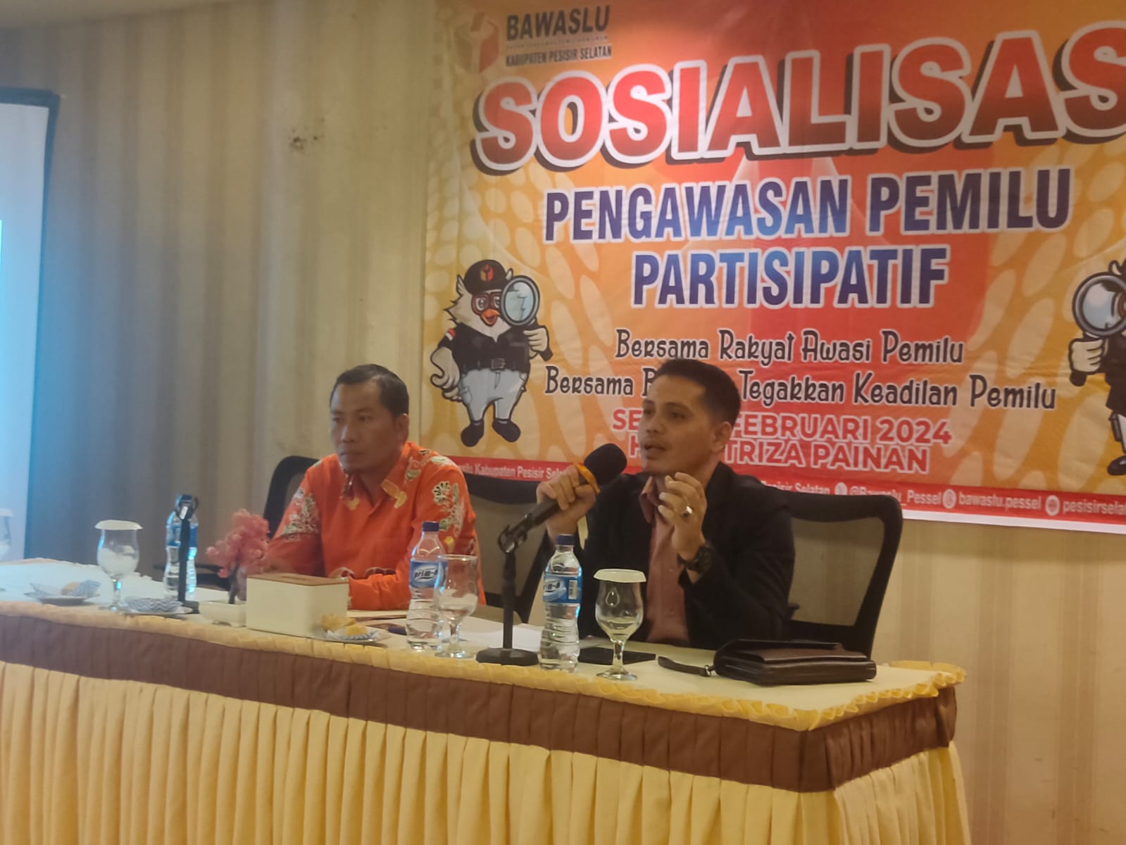 Pesisir Selatan, hantaran.co – Badan Pengawas Pemilu (Bawaslu) Kabupaten Pesisir Selatan menggelar Sosialisasi Pengawasan Pemilu Partisipatif di hotel Triza Painan, Senin (5/2/2024).