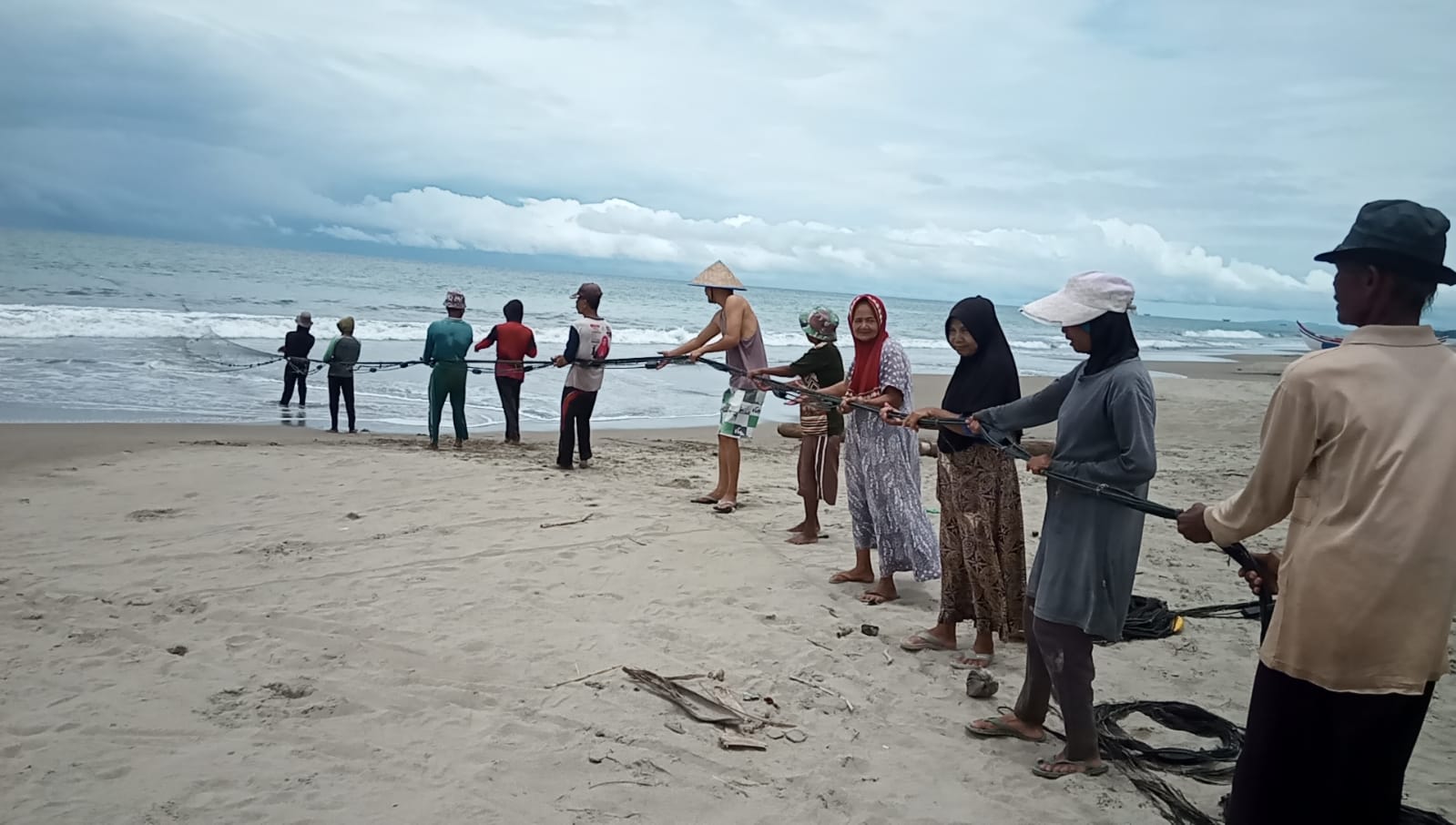“Ya, jika cuaca cerah dan hasil tangkapan banyak kami di sini bisa maelo pukek sampai tiga kali tarik,” katanya pada wartawan disela-sela kegiatannya menarik pukat, Kamis (7/3/2024).