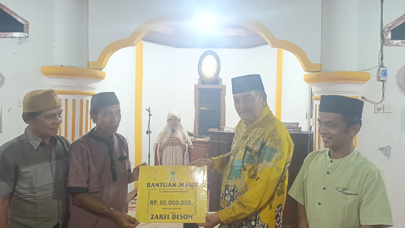 Dalam agenda safari ramadhan tersebut, Zarfi Deson menyerahkan dana sebesar Rp 50 juta yang nantinya dapat digunakan untuk kelanjutan pembangunan Masjid Istiqomah Muaro Sako.